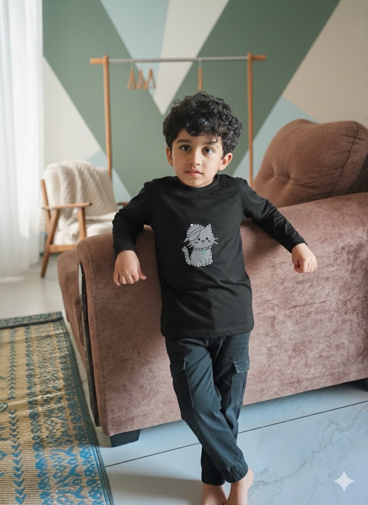 Cute, comfy, and full of playful charm — the Little Whiskers Kids Tee is designed especially for your little ones. Featuring an adorable cat motif, this tee brings a fun and cozy vibe to everyday wear. Made with soft, breathable fabric, it’s gentle on your child’s skin and perfect for all-day comfort.